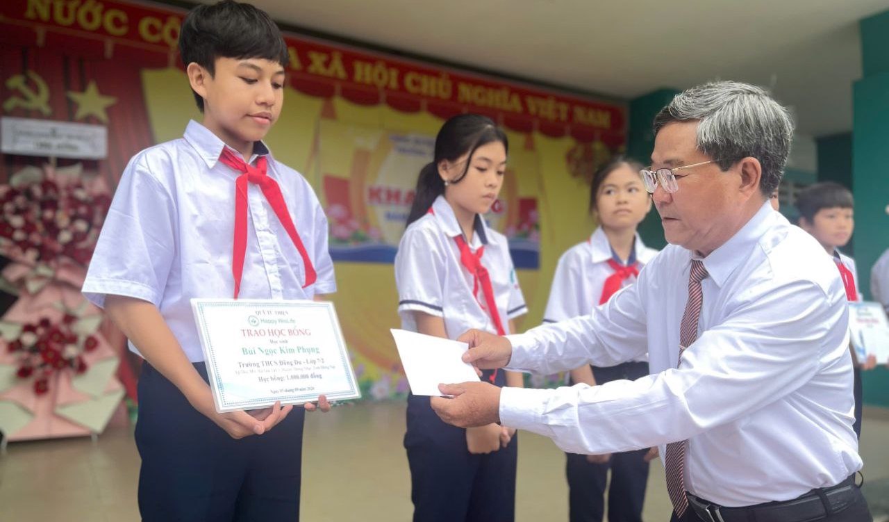 Awarding 20 scholarships - Dong Du Secondary School, Dong Nai
